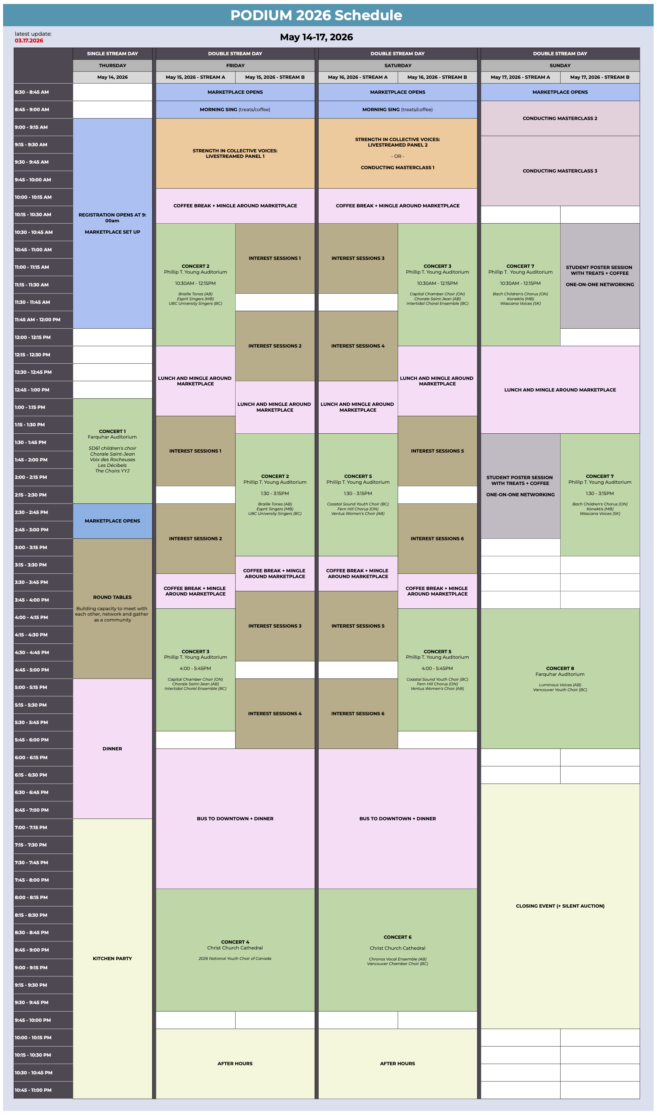 Schedule is subject to change. Latest update: March 17, 2026